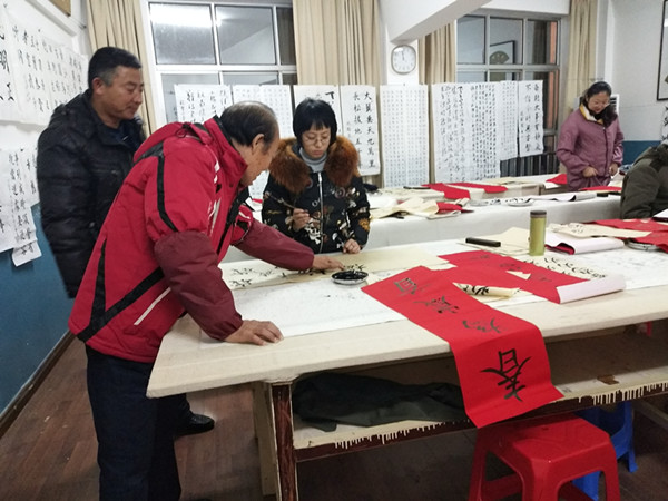 學(xué)員董兵說(shuō):“寫春聯(lián)不僅可以宣傳當(dāng)今新生活,還能表達(dá)自己的祝福,我在社區(qū)工作十多年了,沒(méi)想到還能夠換一種方式為居民服務(wù),真是有意義的事。”剛上兩節(jié)課的新學(xué)員張?jiān)普f(shuō):“我是這里基礎(chǔ)最差的了,也跟著他們練練,說(shuō)不準(zhǔn)過(guò)年也能自己寫春聯(lián)呢!”