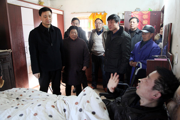 在居民新區(qū)退休職工賈則元家,姜建友來到賈則元的床前,將集團公司黨委的溫暖送到了他的心坎里,賈則元因病臥床不能說話,當看到集團公司和農(nóng)場領導來到家中看望他時,激動的熱淚盈眶,在旁的家人再三感謝集團公司領導對他們的關心。姜建友在了解了賈則元的病情后,叮囑他的家人一定要照顧好老人的生活起居,當?shù)弥先说貌∫荒甓嗯P床不起都是子女在照顧時,姜建友欣慰的說,有這樣的子女也是老人的福氣,希望他們繼續(xù)照顧好老人,讓老人老有所依,病有所托。在困難職工李兵家,姜建友來到床前,握著李兵的手詢問了他目前的病情和治療情況,當?shù)弥翘悄虿【C合并發(fā)癥時,叮囑他要積極做好治療,特別是要去大醫(yī)院做檢查,控制好血糖,要樹立戰(zhàn)勝疾病的信心。所到之處,感謝聲不絕于耳,在這寒冷的冬日,困難職工的家中被一股股暖流包圍。(錢厚紅)