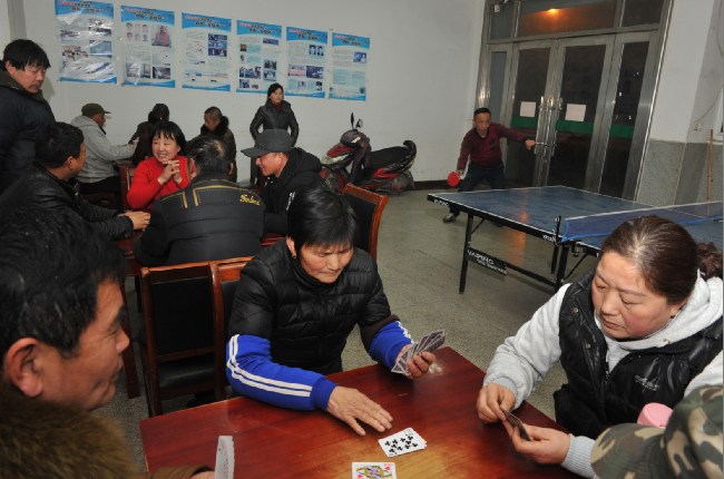 聽她這么一說,人剛才激烈地運動了一陣子,雖然氣喘吁吁,但感覺人的身體好像真的輕松了許多。休息之余,我的目光又被邊上嘻笑的打牌聲所吸引。那3張牌桌上無論男女老少,他們每天晚上自由組合在一起,打著摜蛋的撲克玩法,就是圖的一個快樂。