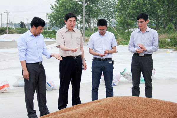 6月9日下午,集團(tuán)公司總經(jīng)理胡兆輝一行冒雨到東壩頭檢查指導(dǎo)“三夏”工作。東壩頭農(nóng)場(chǎng)有限公司黨委領(lǐng)導(dǎo)班子滕金平、朱正海、王鋒陪同調(diào)研并匯報(bào)了當(dāng)前各項(xiàng)工作進(jìn)展情況。