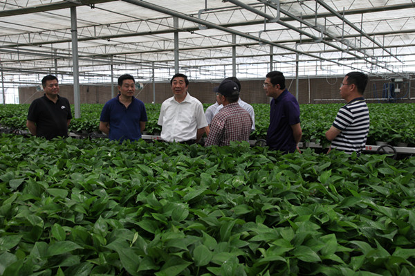 在蘇墾農(nóng)友種苗公司的黃金瓜和“一宅一花”項(xiàng)目的基地內(nèi),胡兆輝看到農(nóng)業(yè)技術(shù)人員吃住在田間地頭十分欣慰。劉衛(wèi)華在匯報(bào)時(shí)說,目前300畝黃金瓜項(xiàng)目運(yùn)行良好,遇到的技術(shù)難題都已克服,陸續(xù)開始采摘上市銷售,良好的品質(zhì)與口感深受消費(fèi)者的青睞。“一宅一花”的培育和養(yǎng)殖都十分順利,正準(zhǔn)備進(jìn)一步擴(kuò)大培育面積。胡總對(duì)農(nóng)友種苗公司充分發(fā)揚(yáng)農(nóng)墾人艱苦奮斗的軍墾精神表示肯定。他指出,農(nóng)友種苗的項(xiàng)目是集團(tuán)領(lǐng)導(dǎo)十分關(guān)心和關(guān)注的產(chǎn)業(yè),要樹立信心和長(zhǎng)遠(yuǎn)的發(fā)展眼光,做好與合作公司在技術(shù)與銷路方面的對(duì)接工作,確保黃金瓜和“一宅一花”項(xiàng)目取得實(shí)實(shí)在在的成效。