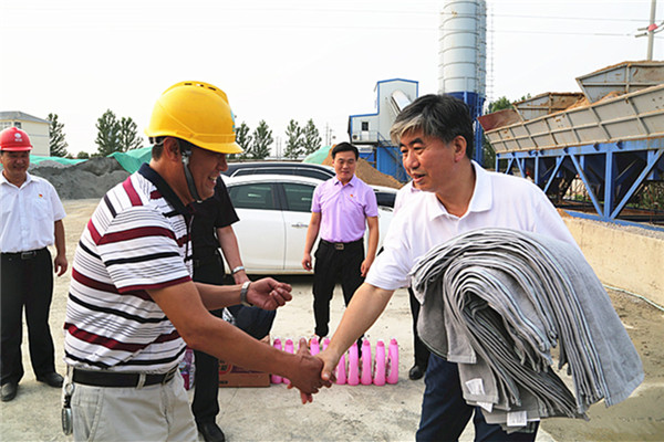 會(huì)后,佟曉廷主席一行在農(nóng)場(chǎng)公司領(lǐng)導(dǎo)的陪同下,冒著高溫來(lái)到連云港振港有限公司院內(nèi),慰問(wèn)了正在更換變壓器的供電中心員工,為他們送去了遮陽(yáng)帽、毛巾、香皂、洗衣液、清涼油等防暑用品,也將集團(tuán)公司工會(huì)和農(nóng)場(chǎng)公司黨委的關(guān)愛送到了他們心坎上。