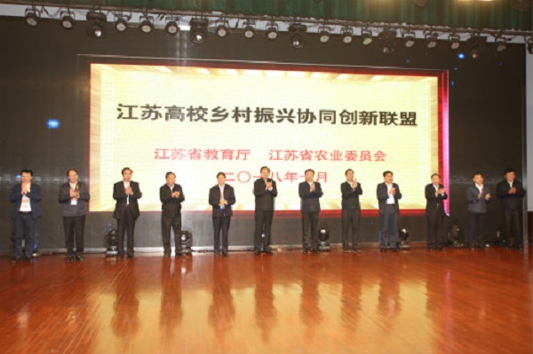 活動現場,繆瑞林、夏心?、吳沛良、葛道凱、楊時云、魏紅軍、姚冠新等共同為“江蘇高校鄉村振興協同創新聯盟”揭牌,并見證了鄉村人才培養項目、現代農業園區項目、“掛縣強農富民工程”項目的簽約儀式。