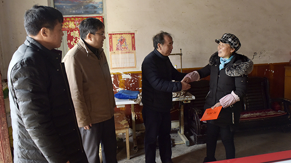 前進居委會5組居民王春梅因患宮頸癌需要治療,丈夫也有肝病長期服藥,兒子尚在讀大專,家庭生活一時非常困難。曹海一行在向她家送上春節慰問金和慰問品的基礎上,還親切地拉著王春梅的手,仔細詢問她家的生產生活情況和她本人的身體及治療情況,鼓勵她保持樂觀心態、樹立生活信心,祝愿她家在各級組織的關心幫助下,早日戰勝病魔、擺脫貧困,共享美好生活。