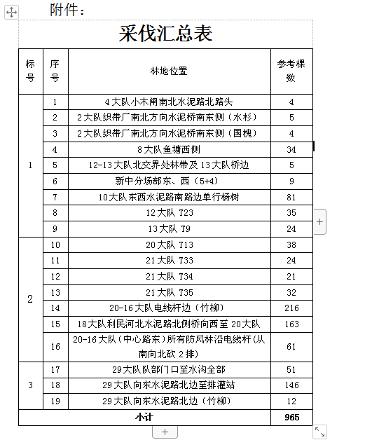 1.擬采伐林,大部分是楊樹,總采伐量約960余株。
