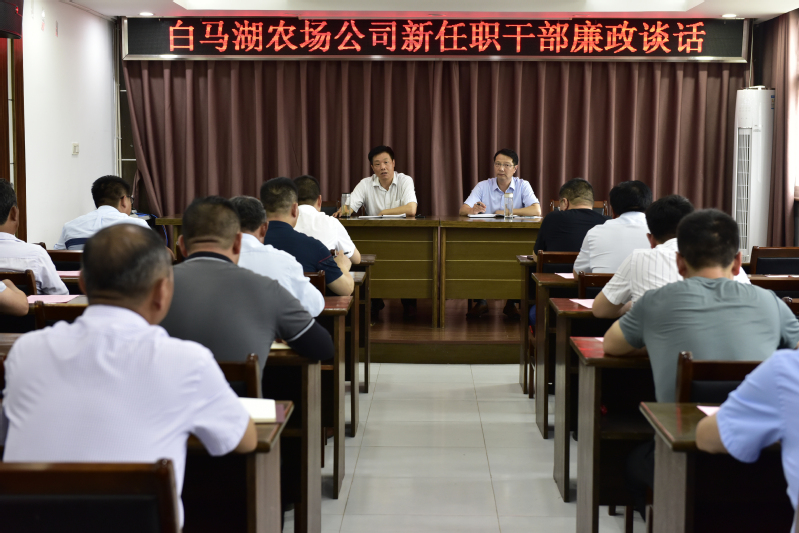 為切實落實全面從嚴治黨主體責任,提高新任職干部對黨風廉政建設重要性的認識,筑牢新任職干部廉潔自律的防線,7月2日下午,白馬湖農場公司對40多名新提拔或崗位調整任新職干部開展集體廉政談話,黨委書記姚春華、紀委書記韓躍武分別進行談話。