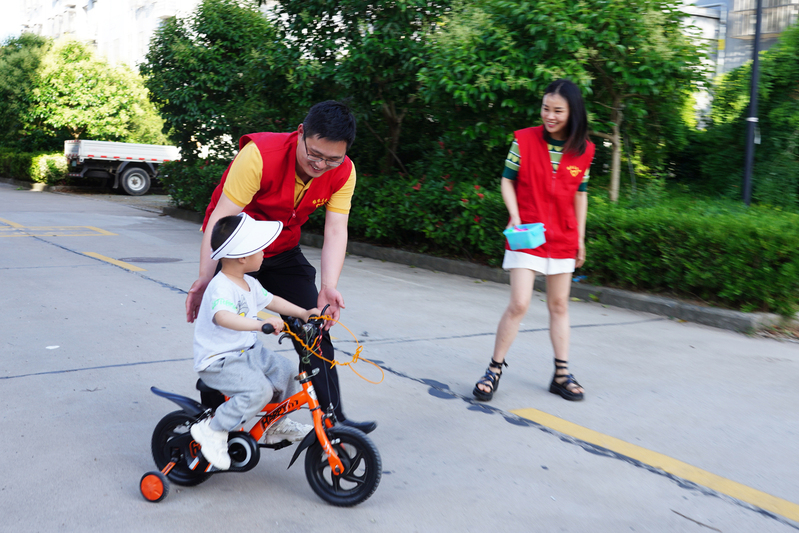 6月10日下午,弶港農(nóng)場團委“愛心爸爸”“愛心媽媽”帶著兒童繪本和玩具,走進困境兒童小浩浩的家里。“奧迪曼與怪獸作戰(zhàn)斗…… ”夢想小屋的書桌前,浩浩依偎在“愛心媽媽”孫菁懷里,聽著有聲有色的奧特曼的故事。“別怕,勇敢地往前騎,我在身后保護你”“我們一起來比賽,看誰快”小區(qū)的空地上,在“愛心爸爸”陳海榮鼓勵下,浩浩騎著兒童單車,開朗的笑聲在小區(qū)里飄蕩。一起玩拼圖、畫畫、做游戲,幾個小時下來,不愛說話的小浩浩從最初的羞澀生疏,到漸漸展露笑容,短暫的相聚中,與“愛心爸媽”建立了深厚的信任和感情。