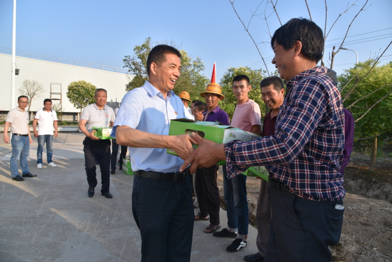 在倉儲部門口,公司黨委書記、董事長郭世平,黨委副書記、總經(jīng)理吳善河率公司領(lǐng)導(dǎo)班子成員為89名勞務(wù)外包一線工作人員送去了清甜涼爽的黃金瓜,同時親切地詢問了一線員工的身體狀況和工作情況,對他們的辛勤付出表示感謝,并千萬叮囑大家炎夏期間注意避暑、保重身體,合理安排工作時間,避開高溫酷暑時段,也希望他們能夠深刻感受到公司黨委的人文關(guān)懷和“在廠如同在家”的幸福感。