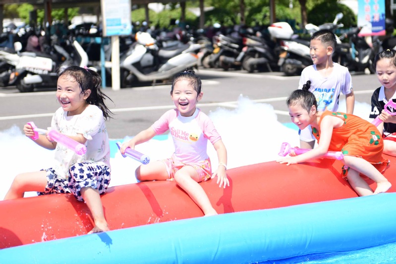 夏末秋初,秋老虎的威力不容小覷。結(jié)合連云港海濱城市特點(diǎn),公司準(zhǔn)備了消暑降溫的泡泡大作戰(zhàn)游戲活動(dòng)。在一片蔚藍(lán)中,飛揚(yáng)的泡沫與激起的水花見(jiàn)證了孩子們的快樂(lè)。