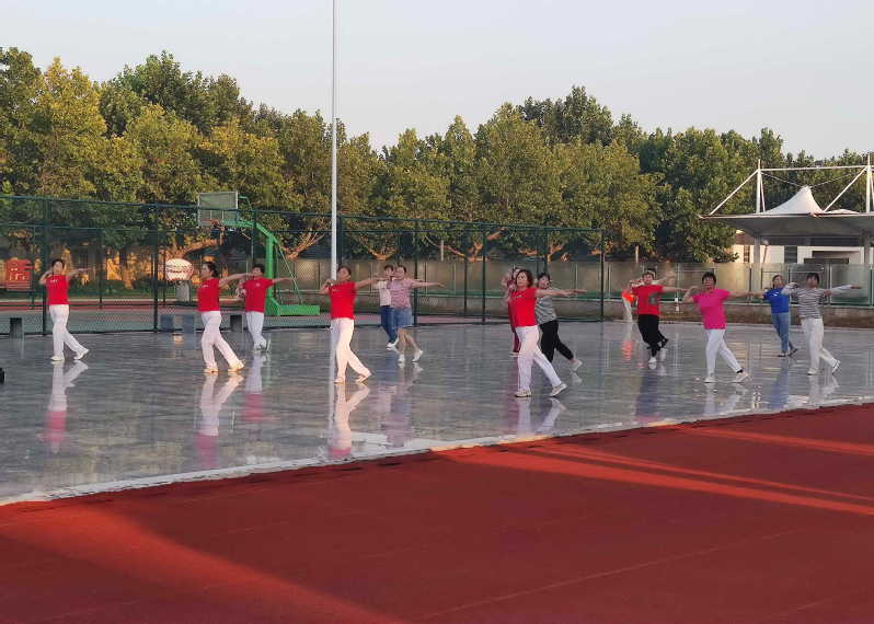 每天凌晨5點半鐘,在江蘇省淮海農(nóng)場社區(qū)職工休閑體育運動廣場上,一支由20多名退休后中老年人組成的健身操大媽們,以其熱情洋溢的舞步,在廣場上形成了一道健身的唯美風景,每一名隊員用健身操表達出幸福的生活。據(jù)悉,像這樣的健身操隊,在淮海農(nóng)場有限公司工會等部門的推進下,好幾支活躍在農(nóng)場社區(qū)不同的區(qū)域,讓愛好健身又鐘情舞蹈的大媽們,就近享受著健身體育帶來的快樂。