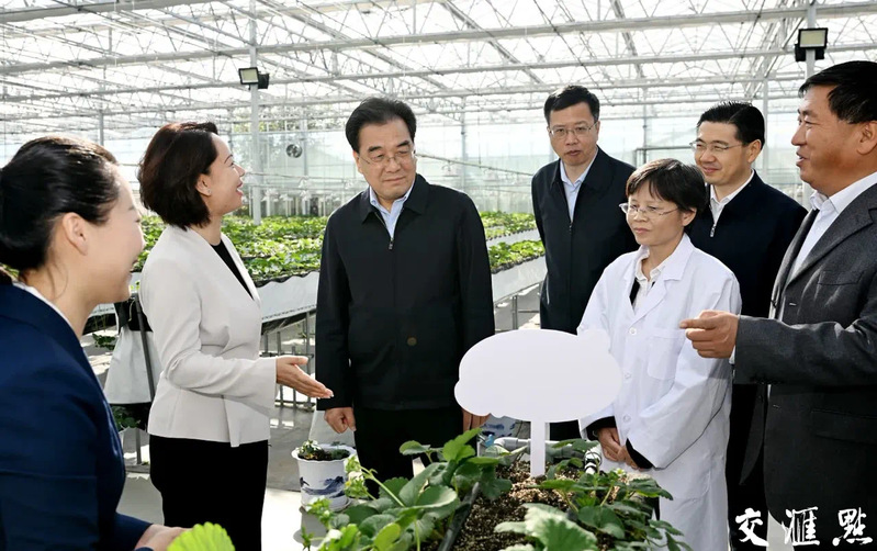鹽都現(xiàn)代農(nóng)業(yè)產(chǎn)業(yè)示范園是集特色種植、休閑觀光、美麗鄉(xiāng)村于一體的國(guó)家級(jí)農(nóng)村創(chuàng)新創(chuàng)業(yè)園區(qū)。信長(zhǎng)星聽(tīng)取園區(qū)規(guī)劃建設(shè)情況介紹,參觀草莓組培中心、育苗中心、多層栽培和新品種示范棚、農(nóng)產(chǎn)品檢測(cè)中心等,并與正在開(kāi)展技術(shù)指導(dǎo)的省農(nóng)科院專家交流。他指出,推進(jìn)農(nóng)業(yè)現(xiàn)代化是實(shí)現(xiàn)高質(zhì)量發(fā)展的必然要求,要強(qiáng)化科技支撐,注重全產(chǎn)業(yè)鏈發(fā)展,探索一二三產(chǎn)融合新模式,不斷提升農(nóng)產(chǎn)品知名度和美譽(yù)度,促進(jìn)農(nóng)業(yè)高質(zhì)高效、鄉(xiāng)村宜居宜業(yè)、農(nóng)民富裕富足。園區(qū)正在進(jìn)行直播帶貨,“90后”專業(yè)合作社負(fù)責(zé)人熱情推介當(dāng)季新品。得知這位“新農(nóng)人”大學(xué)畢業(yè)后扎根農(nóng)村,成長(zhǎng)為草莓種植的行家里手,還帶領(lǐng)村民們?cè)鍪罩赂唬砰L(zhǎng)星連連稱贊,鼓勵(lì)她再接再厲,在廣袤的田野上施展才華、大顯身手。