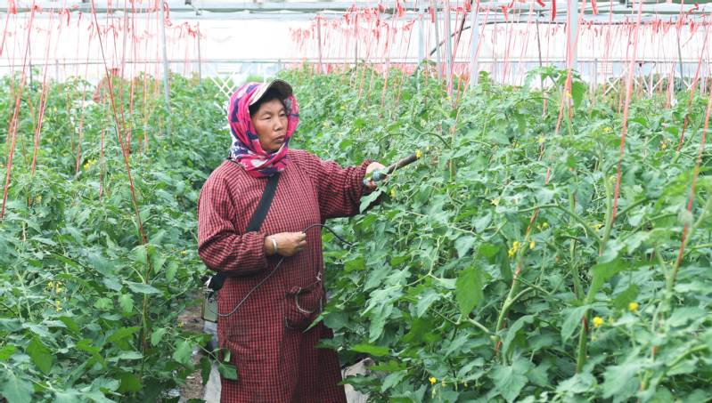 5月3日,興墾科技工作人員在大棚里進(jìn)行作物管理。圖1,工作人員為新品番茄進(jìn)行人工授粉,圖2,工作人員為貝貝南瓜進(jìn)行搭蔓。