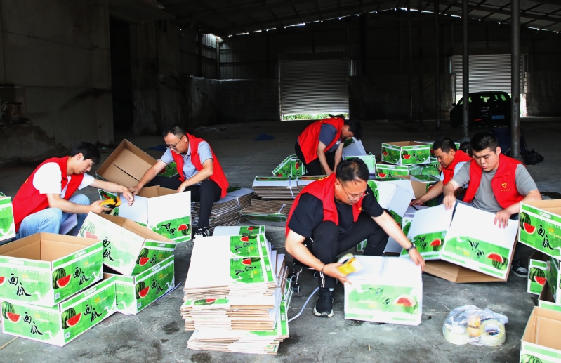 日前,南通江心沙農(nóng)場(chǎng)接到一筆1300余箱西瓜訂單,急需人手幫助進(jìn)行包裝、搬運(yùn)等作業(yè)。江心沙農(nóng)場(chǎng)團(tuán)委第一時(shí)間動(dòng)員全場(chǎng)團(tuán)員青年組建機(jī)動(dòng)突擊隊(duì)到田間地頭和倉(cāng)庫(kù)幫忙,全力以赴趕訂單,讓“志愿紅”成為產(chǎn)業(yè)“虹”的亮麗底色。 袁偉 許叢軍 攝