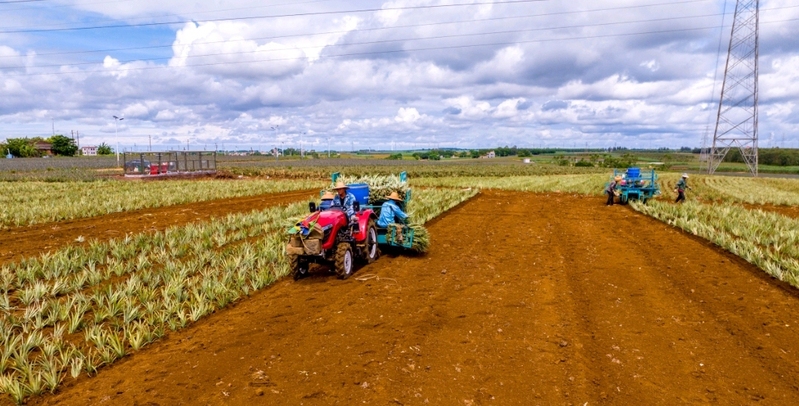 廣東農墾友好農場坐落于湛江市徐聞縣中南部,作為徐聞菠蘿國家地理標志農產品核心產區,有著50余年的菠蘿種植史,常年保持在1.8萬畝左右,年均產量超4萬噸,產值近3億元。近幾年來,友好農場緊扣高質量發展主線,以產業強鎮建設資金為杠桿,構建起集科研育種、標準化種植、精深加工、冷鏈倉儲、智慧物流于一體的菠蘿全產業鏈體系,助力廣墾菠蘿從地域特產向中國“金字招牌”跨越升級。2023年,友好農場成功躋身國家第一批產業強鎮行列,為鄉村產業振興樹立示范樣板。