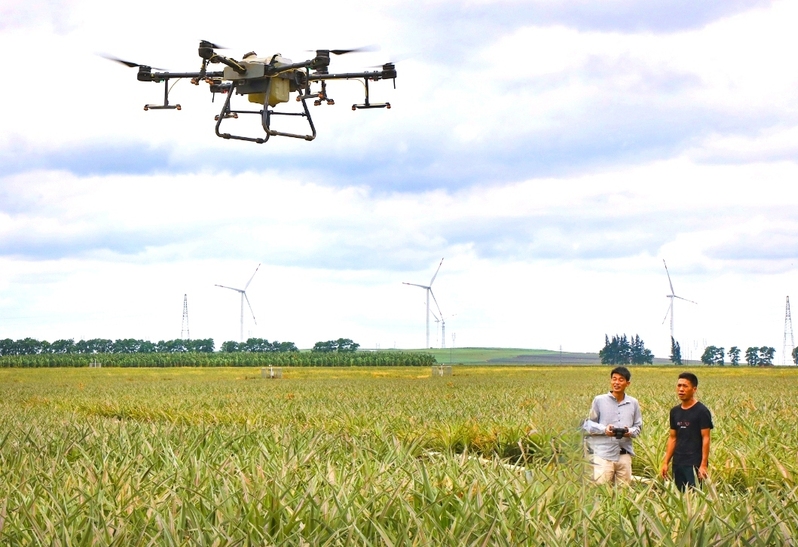 友好農場的萬畝菠蘿田處于菠蘿生長黃金地帶,早期主要種植巴厘品種,占總面積的98%以上。由于種植存在品種單一、管理粗放、單價低等問題,一度出現“農戶不敢種,商人不敢收”的窘境。2021年以來,友好農場利用菠蘿產業強鎮項目,引進臺農16號、17號等優質鳳梨品種,篩選出果肉嫩滑、酸甜適中的臺農17號等優良品種,試驗示范種植480畝,并通過GPS定位、蓋膜、電石催花、果實套袋等技術創新,努力攻克鳳梨管理技術難題,實現了畝均利潤近3000元,讓農戶的“傷心果”變成了“致富果”。如今標準化種植模式已帶動30戶農戶種植臺農17號、芒果鳳梨、冬蜜鳳梨等新品。農場計劃3年內實現1萬畝新品種示范規模,覆蓋率達50%以上。