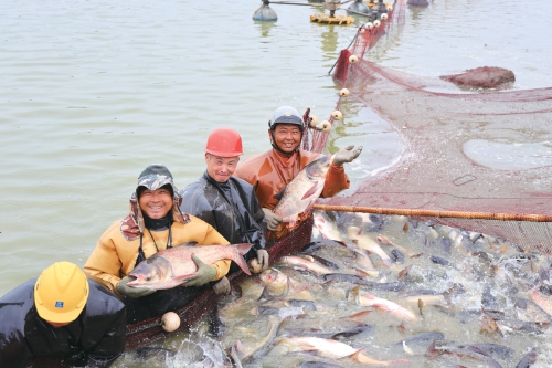近日,江蘇省連云港市海州區(qū)的江蘇農(nóng)墾崗埠農(nóng)場,工人們在魚塘里拉網(wǎng)捕撈分揀花鰱、白鰱等水產(chǎn)品,準(zhǔn)備發(fā)往周邊市場銷售。