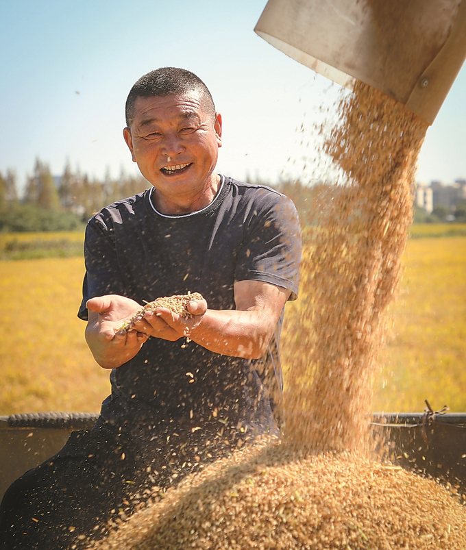 10月10日,南通市海門區(qū),江蘇農(nóng)墾江心沙農(nóng)場500余畝“低GI”功能性水稻喜迎豐收。