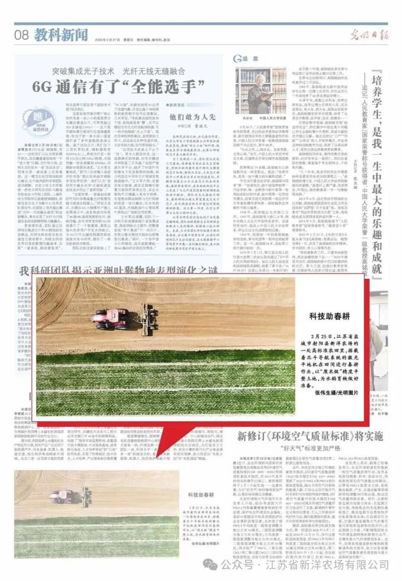 連日來,中央電視臺、《經(jīng)濟日報》《光明日報》等多家中央主流媒體將目光投向江蘇農(nóng)墾新洋農(nóng)場春耕春管一線,集中報道農(nóng)場依托現(xiàn)代科技賦能農(nóng)業(yè)生產(chǎn)的生動實踐,展現(xiàn)新質(zhì)生產(chǎn)力在田間地頭煥發(fā)出的蓬勃活力。