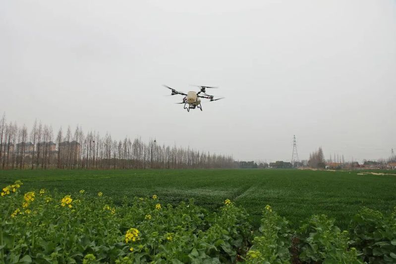 無人機“飛”出夏糧豐收底氣。在蘇墾農發弶港分公司金灘涂基地,5000余畝小麥整齊健壯、長勢喜人。基地堅持精細化田間管理,落實科學化農藝措施,為夏糧豐產豐收打下堅實基礎。據農業中心技術人員介紹,3月初的連續降雨有效補充了土壤墑情,對小麥生長十分有利。 基地管理人員搶抓農時,全力推進追肥、病蟲害防控等關鍵田管工作。多架無人機在麥田上空有序穿梭,將肥料與藥劑均勻噴施到田間,高標準完成拔節肥追施及病蟲害防控任務。據悉,無人機日作業面積可達1000畝,肥料農藥利用率提升20%以上,既確保噴施均勻,又減少資源浪費,有力推動農機與農藝深度融合,為小麥優質生長保駕護航。