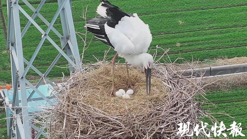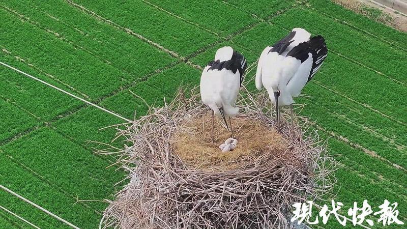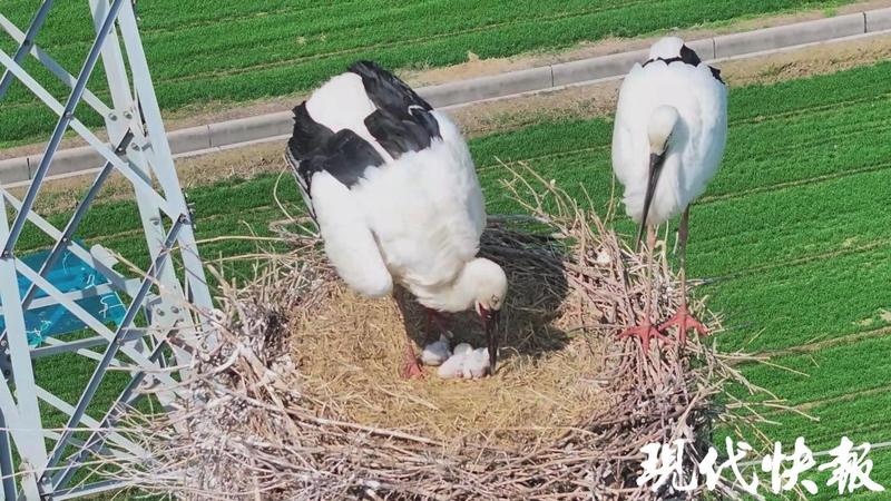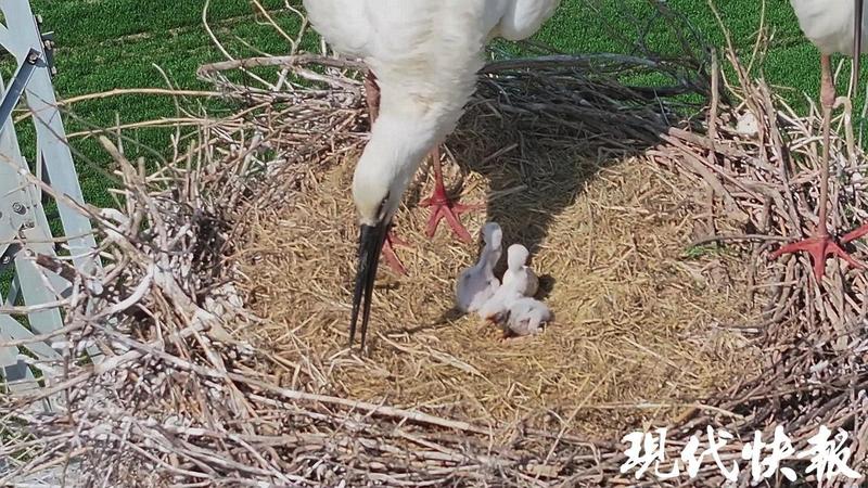 現代快報丨東方白鸛孵化出三只寶寶,鹽城拍攝愛好者全程記錄
