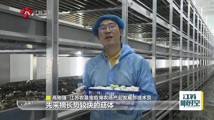 江蘇農墾寶應湖農場的現代化菌菇廠里,工廠化培育的雙孢菇也陸續成熟,菌蓋直徑達到4到4.5厘米。