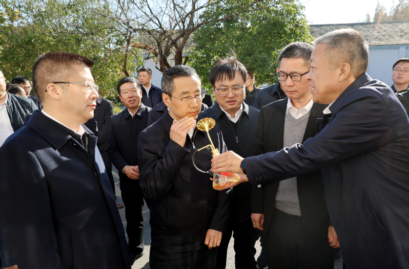 11月29日,安徽農墾黨委書記、董事長、總經理張其廣帶隊到新曹農場、東壩頭農場考察,集團黨委書記、董事長吳本輝陪同考察。安徽農墾黨委委員、工會主席姜三豹,總農藝師姚禮發,東臺市委書記商建明,市委副書記、市長李杰,集團公司副總經理劉耀武、黨委委員丁濤參加考察。在新曹農場和東壩頭農場,張其廣一行分別實地調研了江蘇農墾天然香料有限公司、農機社會化服務應急保障中心、油菜綠色高產示范基地、糧食烘干倉儲中心、百萬羽優質蛋雞產業項目、農機作業現場、小麥高產種植田塊,詳細了解新曹農場農業現代化建設、“四個一”特色產業培育和東壩頭農場農業生產精細化管理、麥稻高產種植及配套農機具保障情況。張其廣對新曹農場產業發展和東壩頭農場農業精細化管理取得的成效給予充分評價。他表示,江蘇農墾多年來堅持深化改革創新,在扛牢糧食安全責任、產業發展、農業社會化服務、一二三產融合發展、完善現代企業制度等方面積累了很多成功經驗。希望雙方在良好合作基礎上,找準切入點,進一步加強交流協作,加深“兄弟情誼”,共同實現高質量發展。吳本輝對張其廣一行的到來表示歡迎,并介紹了江蘇農墾總體概況和產業發展情況。他表示,安徽農墾堅定不移實施“強科