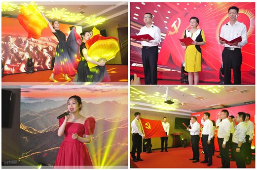 馬明亮帶領(lǐng)導(dǎo)班子及新黨員面對(duì)黨旗莊嚴(yán)宣誓,最后,活動(dòng)在全場(chǎng)齊聲高唱《沒(méi)有共產(chǎn)黨就沒(méi)有新中國(guó)》的歌聲中圓滿落幕。