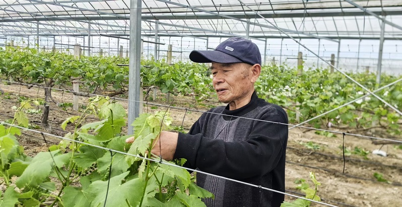 春日管護(hù)正當(dāng)時(shí),海安農(nóng)場(chǎng)工人在溫室大棚內(nèi)精心打理葡萄藤,助力豐產(chǎn)增收。