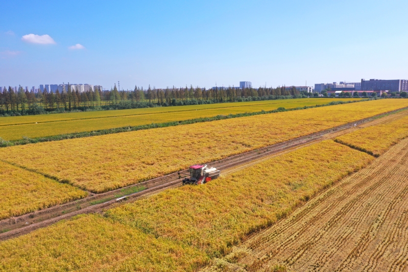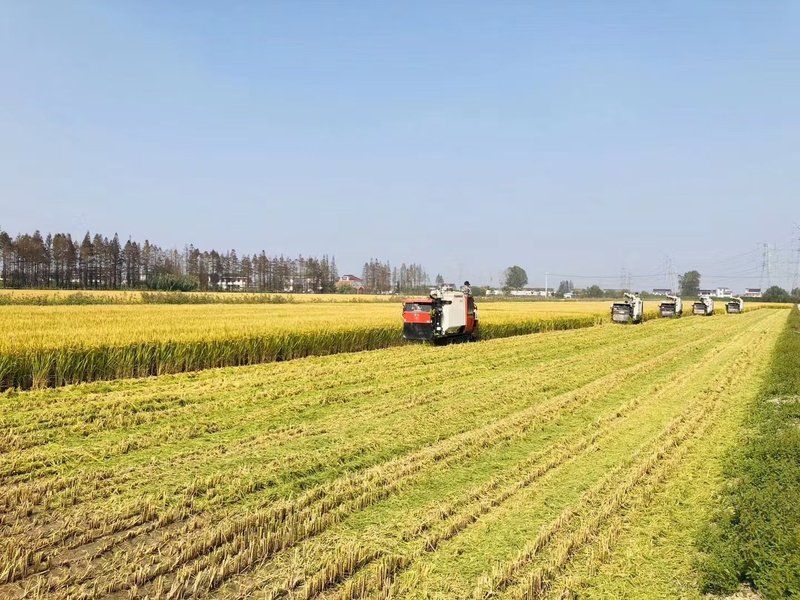 10月9日,臨海農(nóng)場的稻田里機聲轟鳴,1000畝早熟水稻品種“武育粳702”首塊田正式開鐮收割。