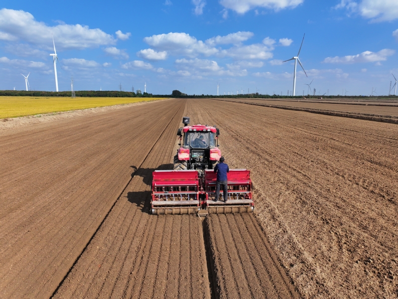 “開鐮了!豐收了!”10月17日上午10時,一臺臺聯合收割機駛向蘇墾農發新洋分公司新北生產區5大隊,金黃的水稻被大型機械收入“囊”中,新洋5.3萬畝水稻機收作業正式拉開序幕。今年“三秋”是集團公司第二次黨代會勝利召開后的第一個農忙,做好“三秋”工作意義重大,黨委班子成員靠前指揮,深入田間查看水稻收割情況。稻田接連成片,稻穗迎風擺動,收割機馬力全開、縱橫馳騁,收割、脫粒、裝車……一氣呵成,一派豐收的喜人景象。收割現場,蘇墾農發新洋分公司嚴格收割質量監督,把機械減損作為糧食增產的重點,加大收割質量檢查力度,減少收割損失,實現秋糧顆粒歸倉。“我們密切關注天氣情況和水稻成熟度,統籌安排,堅持質量第一,進度第二,努力做到成熟一塊收割一塊,穩步推進收割進度?!鞭r業中心負責人介紹。蘇墾農發新洋分公司立足“前期‘揀’收、中期‘穩’收、后期‘搶’收”的原則,充分利用秋收早期溫度高,有利晾曬、烘干的條件,適時收、曬、烘,為秋播及時騰茬,確保11月6日前完成秋播田塊收割任務。面對不穩定天氣因素,蘇墾農發新洋分公司強化機械保障,本部準備收割機58臺套,運糧車53臺,另調度好26臺小型履帶式收割機,隨時應對突發